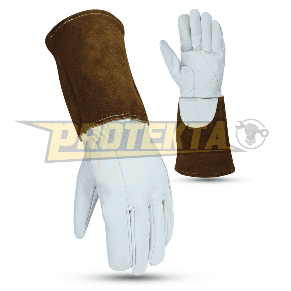 Welding gloves are heavy-duty protective gloves designed to shield hands from extreme heat, sparks, and sharp metal edges during welding. Made from heat-resistant materials like leather, they provide durability, flexibility, and insulation for safe handling of welding tools and materials.