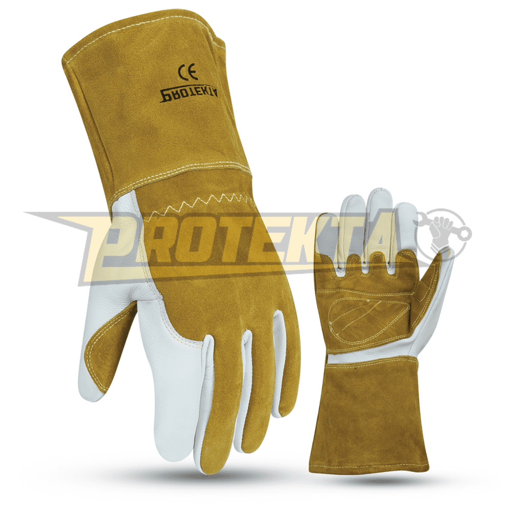 Welding gloves are heavy-duty protective gloves designed to shield hands from extreme heat, sparks, and sharp metal edges during welding. Made from heat-resistant materials like leather, they provide durability, flexibility, and insulation for safe handling of welding tools and materials.