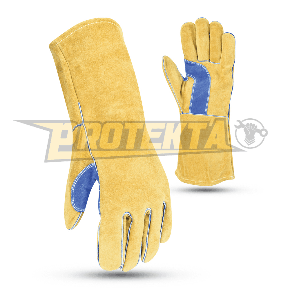 Welding gloves are heavy-duty protective gloves designed to shield hands from extreme heat, sparks, and sharp metal edges during welding. Made from heat-resistant materials like leather, they provide durability, flexibility, and insulation for safe handling of welding tools and materials.